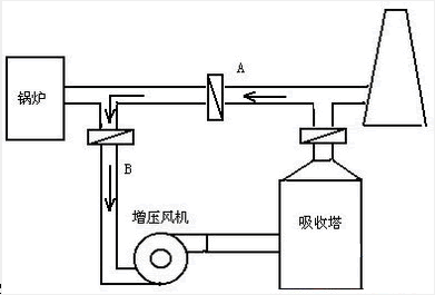 如发生第二种情况,净烟气产生回流,旁路烟道的烟温应与锅炉的排烟温度低许多,如果脱硫装置没有GGH,温度更低,这样我们可调节增压风机动叶或静叶的开度,关叶片开度,减少增压风机的流量。