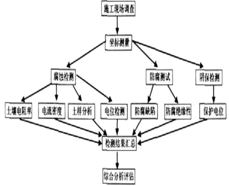 土壤腐蚀性的检测包括电阻率、极化电流密度、氧化还原电位、土样分析、杂散电流干扰情况和管地电位等项目的检测,并根据检测值的大小,划定相应的等级。