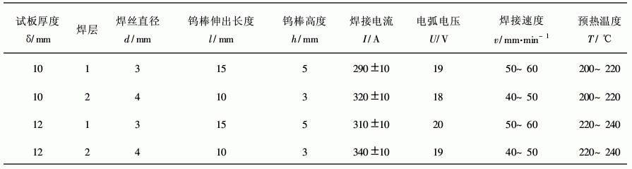 图3 组装环缝工装图 4 焊接试验 首先模拟实际生产情况,采用10 mm×150 mm×300 mm和12 mm×15 mm×300 mm各若干块试板进行对接接头试验。经过多次试焊,摸索出了理想的焊接参数。焊缝成形美观,经100%x射线探伤,全部符合jb1580—75铝探伤标准i级,焊接参数及接头力学性能见表1和表2。 表1 焊接参数