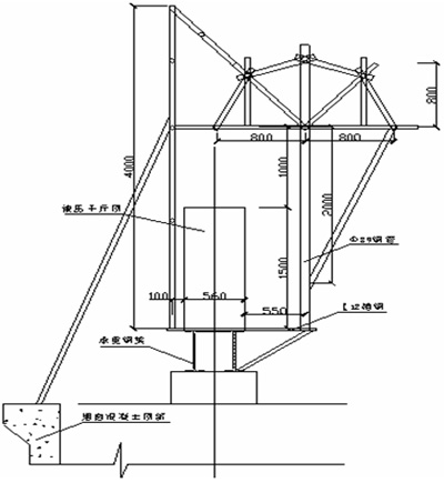 方案二:采用两台250T液压千斤顶(烟囱钢内筒提升用)同步提升。