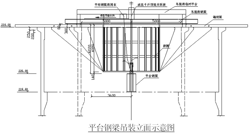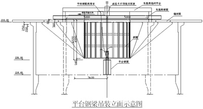 包括顶层平台主梁制作及预组装,顶层平台主梁运输,吊装用辅助梁制作就位,液压设备就位