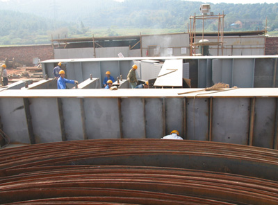 顶层平台主梁是箱形结构梁,要求精度较高,须采取措施减小焊接应力变形,制作难度较大,为保证在高空安装过程中的准确组装,减少空中组对难度,主梁在吊装前须在加工场预组拼,如图。