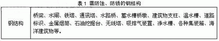 3.1钢结构的种类和特征 表1是代表性的防蚀、防锈缤扛纸峁梗帕骸⑺蕖⒌缆繁晔都堋⒔鹗粞掏病⑹推教ā⑶帕褐е戎掷喾倍嗟母纸峁埂K嵌济媪偻晃侍?mdash;—防蚀。