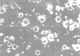 通过对玻璃试片的喷涂,可方便地认定所喷材料是否熔化、是否变形,不熔化的就根本不能喷涂,只熔化未变形的,虽能喷涂但气孔率极高,通常也不能应用,除非有特殊要求,只有既熔化又变形的才可得到高质量的喷涂层。下面就是不同喷枪喷涂不同材料在玻璃试片上的照片