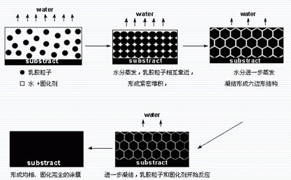 图1 水性环氧树脂涂料的固化成膜过程示意图