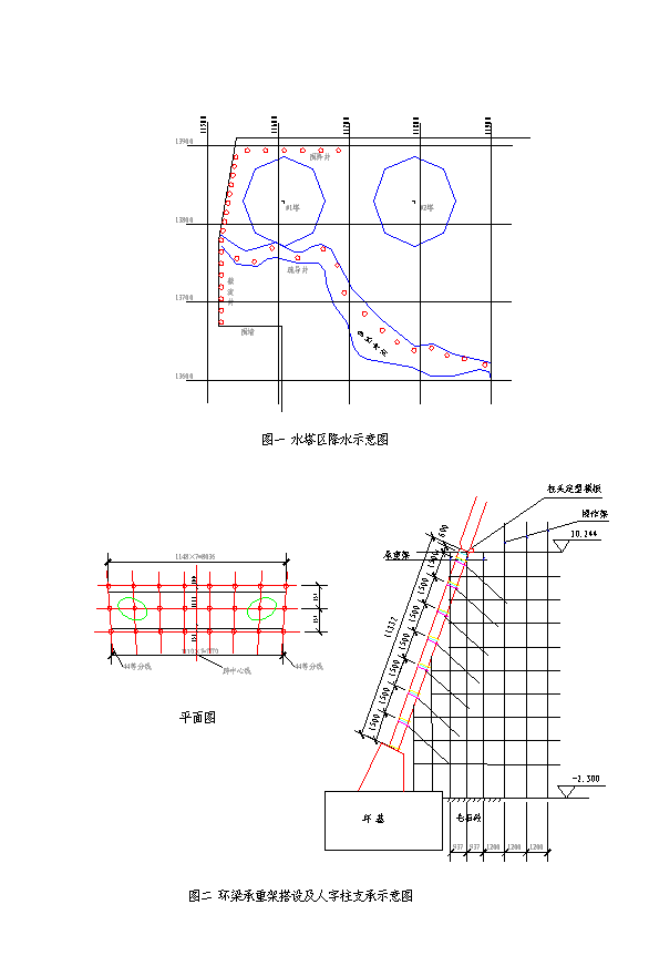 人字柱及环梁部位是冷却塔的最关键部位,也是外表观感质量控制的重点。此部位我们采用全现浇方式组织施工,环梁承重架及人字柱支承见附图二。