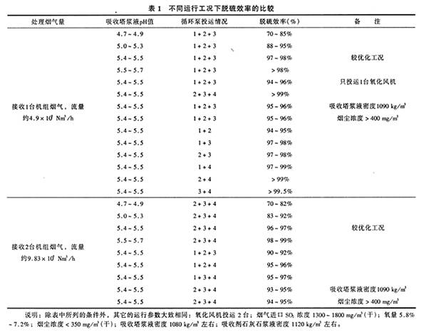 从湿法烟气脱硫工艺过程和化学反应历程不难发现,提高烟气与混合浆液的接触反应时间、增加浆液循环量、增加氧量、控制吸收塔浆液合理的pH值等措施都将有利于SO2的吸收、脱硫率的提高和石膏的形成。
