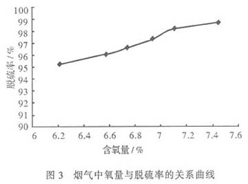(2)进入吸收塔的原烟气中O2含量高、粉尘浓度低、烟温低等都对脱硫反应有利,当氧量一定时,增开一台氧化风机能提高脱硫效率。