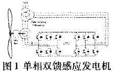 1)利用双反馈感应发电机(DFIG)的变速技术:这种强迫开关的功率变流器的原理图如图1所示。变流器包括两个三相AC—DC功率变流器,两者由一个直流电容器电池链接。这种结构一方面保证对机器的有功功率和无功功率进行矢量控制,另一方面还能减少功率变流器注入电网的谐波大小。
