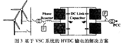 传统的热量流通空气调节(HVAC)输电系统是一个将风电场跟电阏相联的简单、便宜的解决方法。高压直流输电(HVAC)接入电网技术能将风电场机组连接到电网,并且将电能安全有效地输送到负载中心。对离岸风电场来说,DHVC输电系统比HAC输电系统具有很多优点。